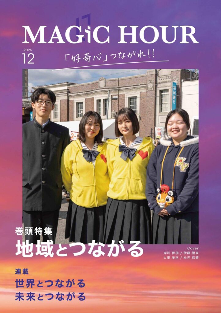 飯塚高校の定期刊行マガジン『MAGIC HOUR』最新号とバックナンバーを掲載しています。年4回の刊行を予定。 2025年4月号が創刊号となり、現在、福岡県内の中学校を中心に配布中です。大変珍しい「蛇腹タイプ」のマガジンですので、ぜひお手に取っていただけるとうれしいです。次号は12月号となります。お楽しみに! 2025年12月号 クリックするとPDFが別ページで開きます 2025年10月号 クリックするとPDFが別ページで開きます 2025年7月号 クリックするとPDFが別ページで開きます 2025年4月号 クリックするとPDFが別ページで開きます