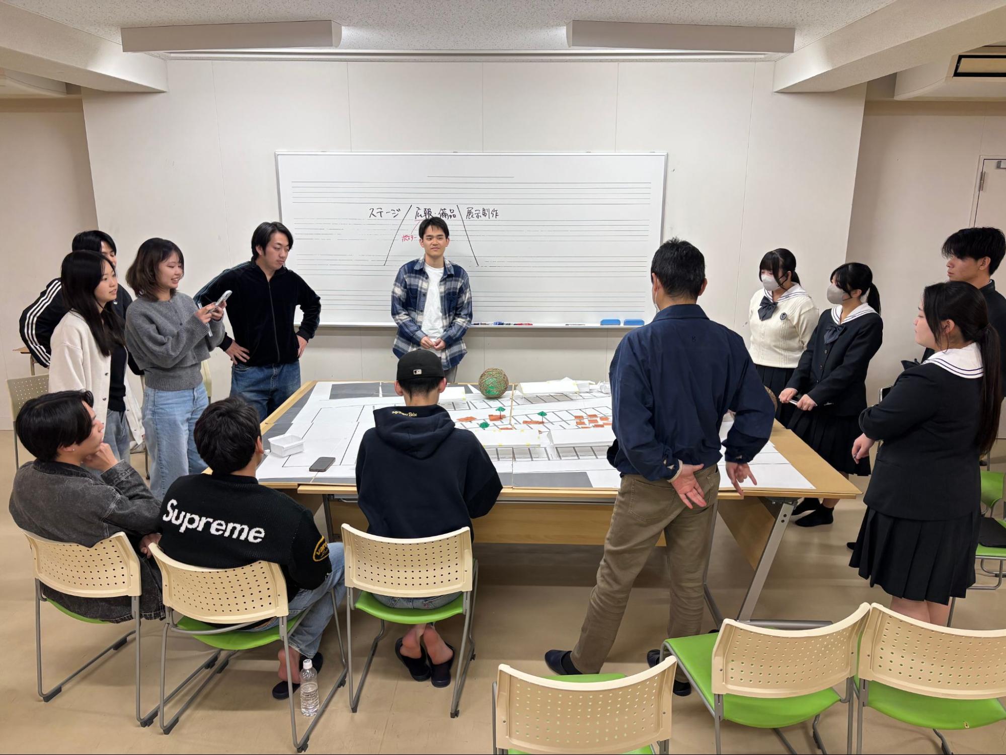 協力教育機関の一校として空間デザインに関わっていただいている、近畿大学 産業理工学部 小池研究室との準備風景