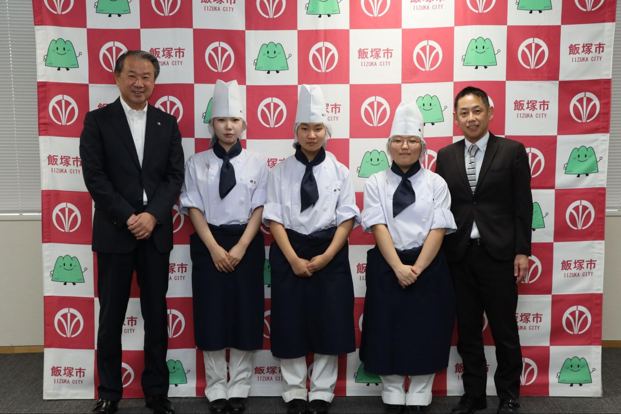 陸上部・製菓部が飯塚市長を表敬訪問。インターハイ入賞とスイーツ甲子園全国大会出場・2連覇への意気込みを報告