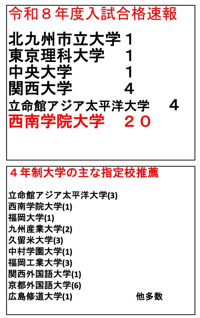 本校生徒の進路の広がりと成果がうかがえる内容となっています。